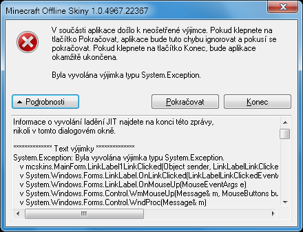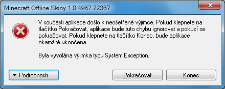 Pokud se během běhu aplikace otevře toto okno, důležitá činnost aplikace selhala. Klikněte na tlačítko Podrobnosti a pošlete mi na e-mail [email protected] text, který se objeví.
